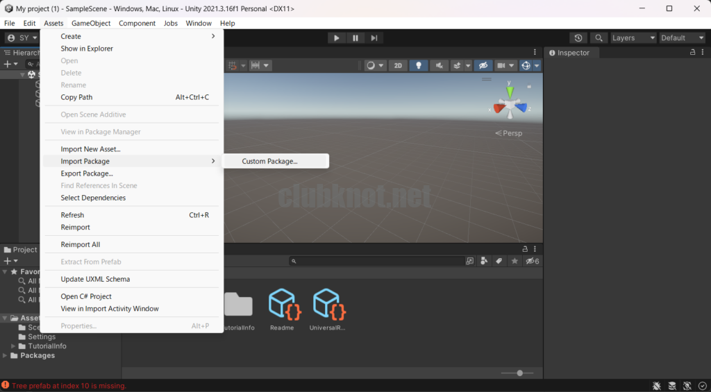 パッケージファイルをドラッグアンドドロップでインポートしようとすると一部のファイルが取り込めない不具合が発生するため、必ずメニューからインポートする。