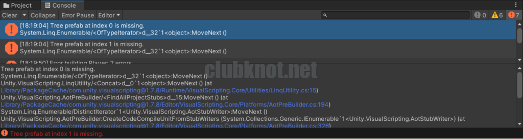 Unity.VisualScripting.AotPreBuilder/<FindAllProjectStubs>d__15:MoveNext () (at Library/PackageCache/com.unity.visualscripting@1.7.8/Editor/VisualScripting.Core/Platforms/AotPreBuilder.cs:194)