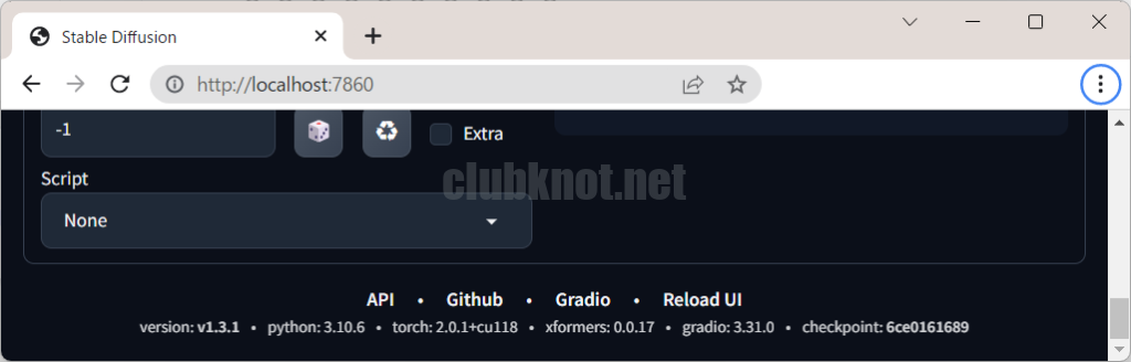 webui-user.batを実行するとモジュールがインストールされます。Web UIの一番を見るとインストール済みのバージョンを確認することが出来ます。xformersのところにバージョンが書かれていれば成功です。